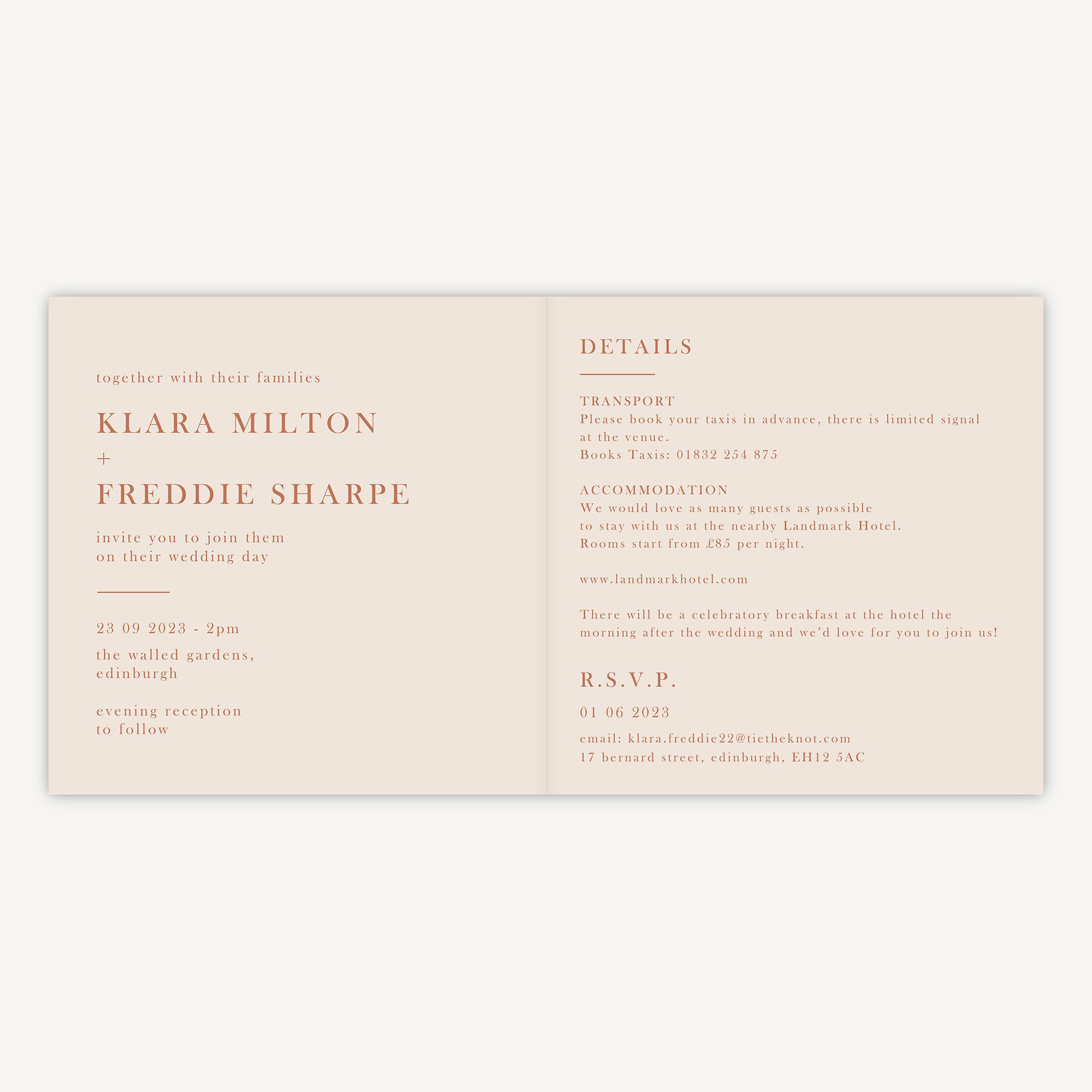 Caramel Autumn Colour Block Folded Wedding Invitation