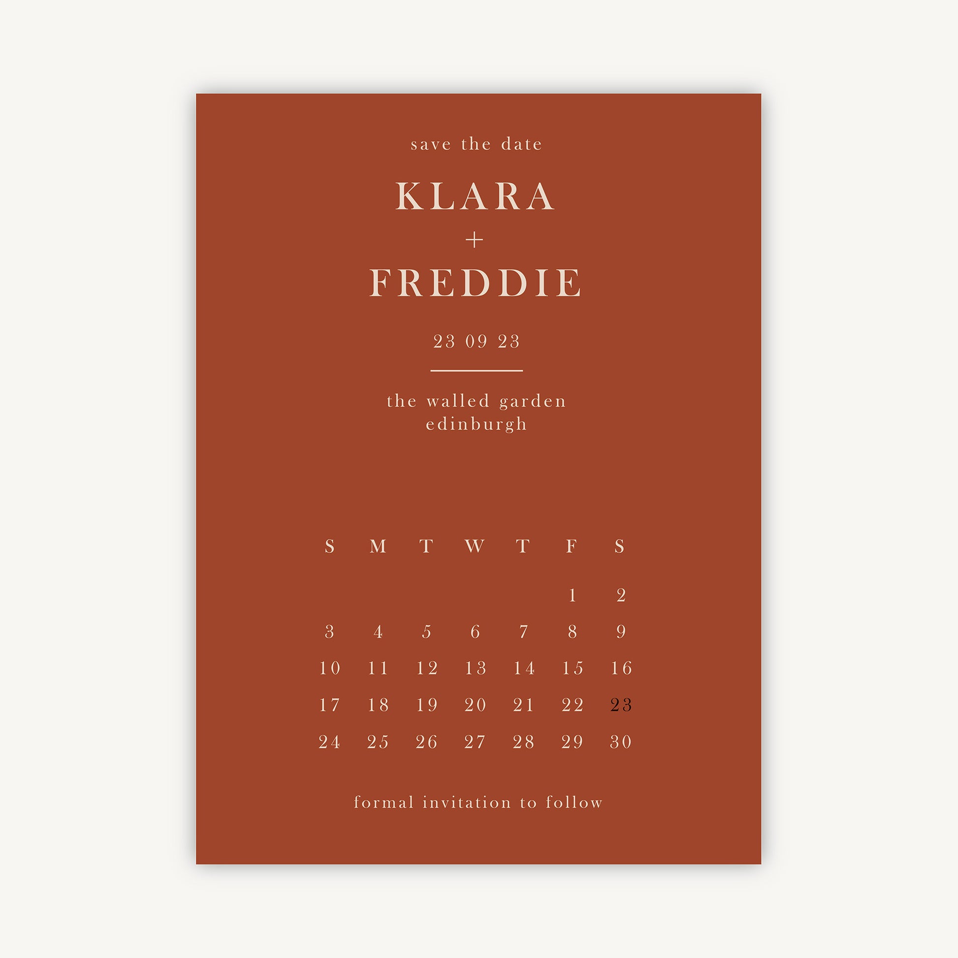 Our Caramel Autumn Colour Block Folded Wedding Save the Date is a charming way to announce the big day to your guests. The sleek left-aligned layout allows the beautiful block colours to take precedence. An innovative way to give your guests a reminder to keep, the folded element reveals a calendar feature highlighting your wedding date.