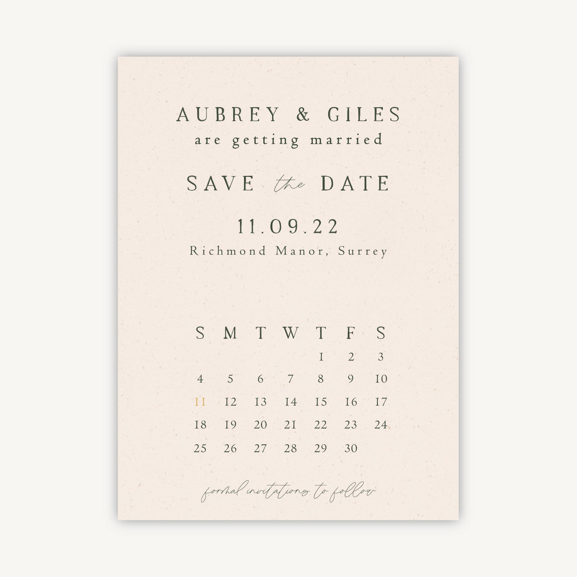 Folded save the date with matching blank envelope