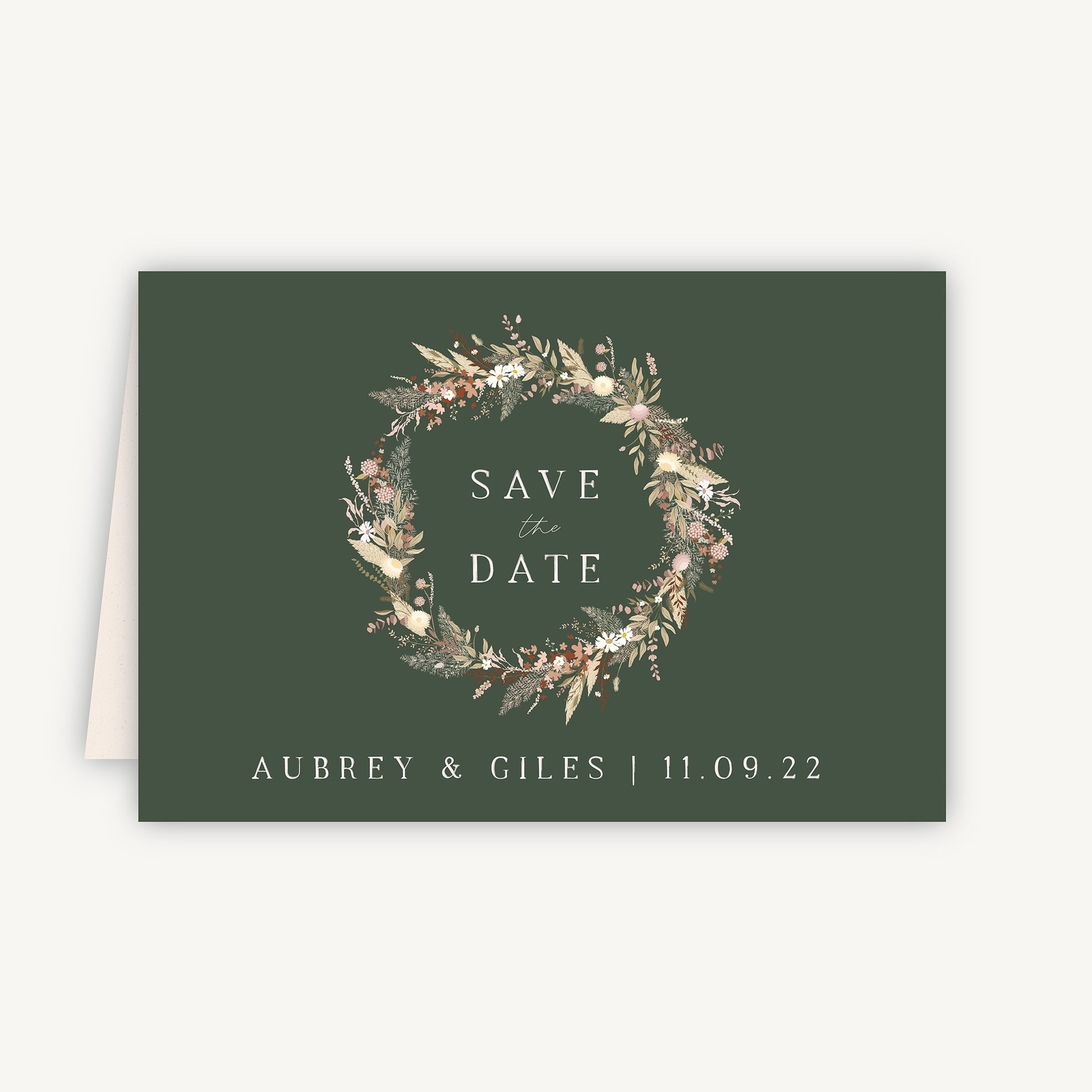 Dried Flower Wreath Folded Wedding Save the Date