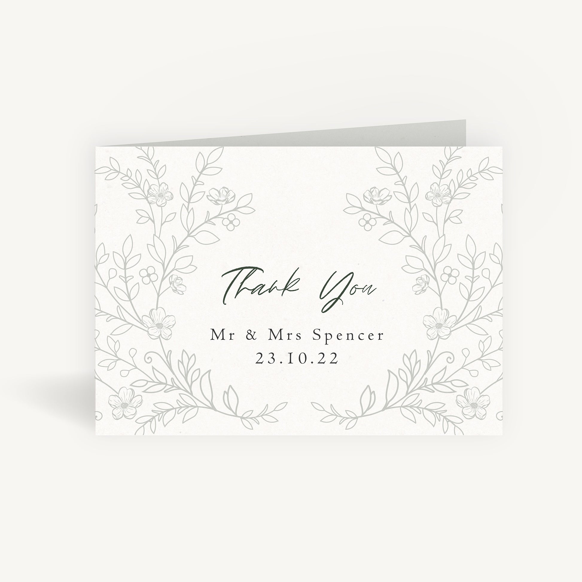 Say a heartfelt thank you to your guests with our Elegant Floral Wedding Thank You Card Folded. The soft stone-coloured designs are contrasted with reverse printing and separate elements of a muted oyster shell shade. The delicate folded card sends thanks above your newly wedded names and date on the front and inside there is space for your heartfelt message of gratitude.