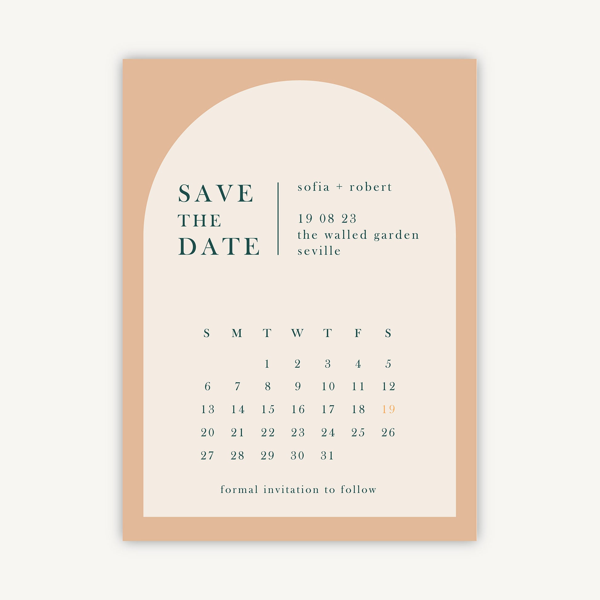 Prepare your guests for some summer citrus with our Mediterranean Oranges Wedding Save the Date. The illustration displays gorgeous textured citruses, rich greenery and orange blossoms in varying compositions across the collection. The folded design feature reveals a modern style calendar inside with your wedding details displayed above.