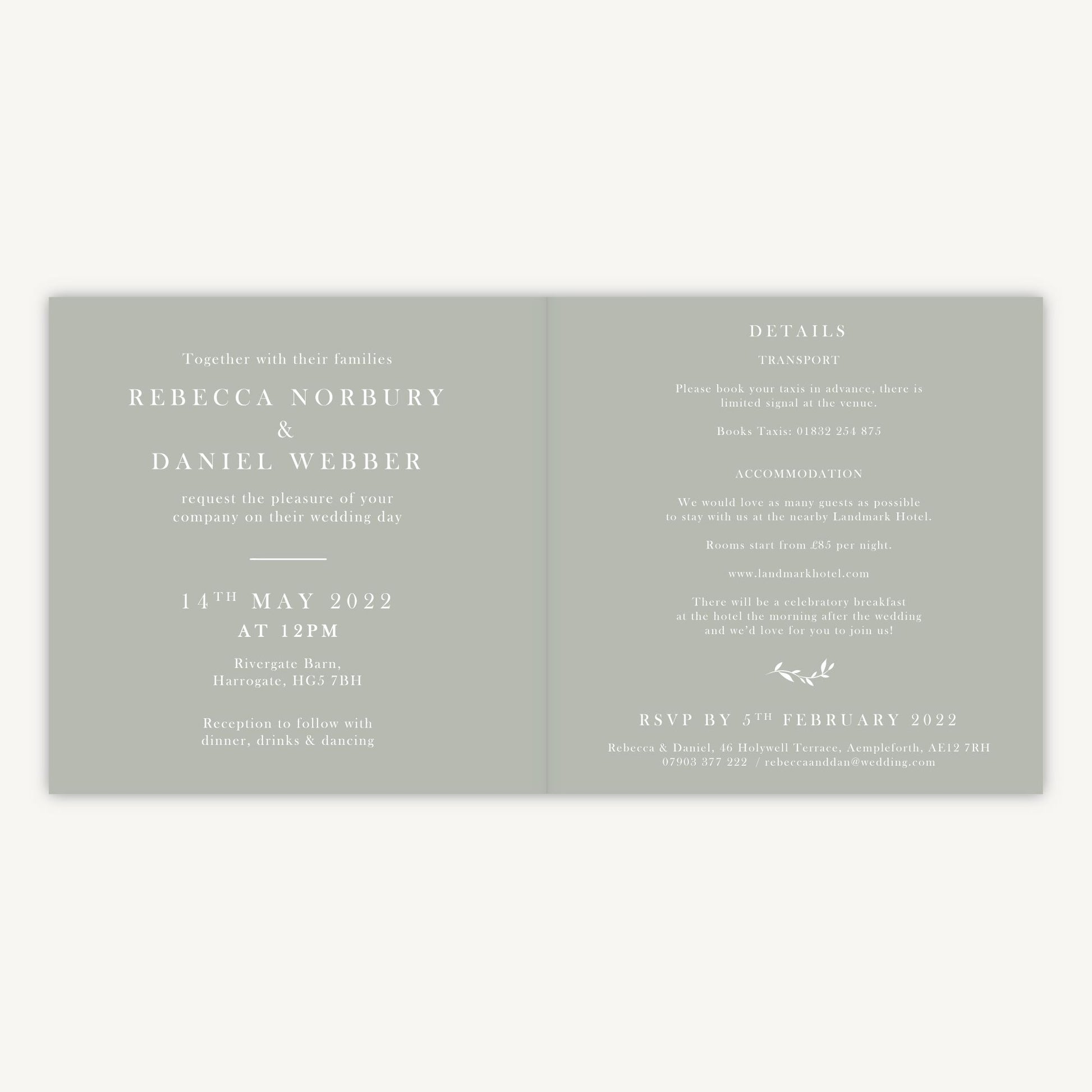 Welcome your guests in style with our elegant Sage Wildflower Folded Wedding Invitation. The assortment of florals within the illustration are featured in varying formations across the stationery. The cover introduces the theme of your upcoming wedding and inside addresses your loved ones with the details of the day, plus there is space for additional guest information and RSVP terms on the neighbouring page.