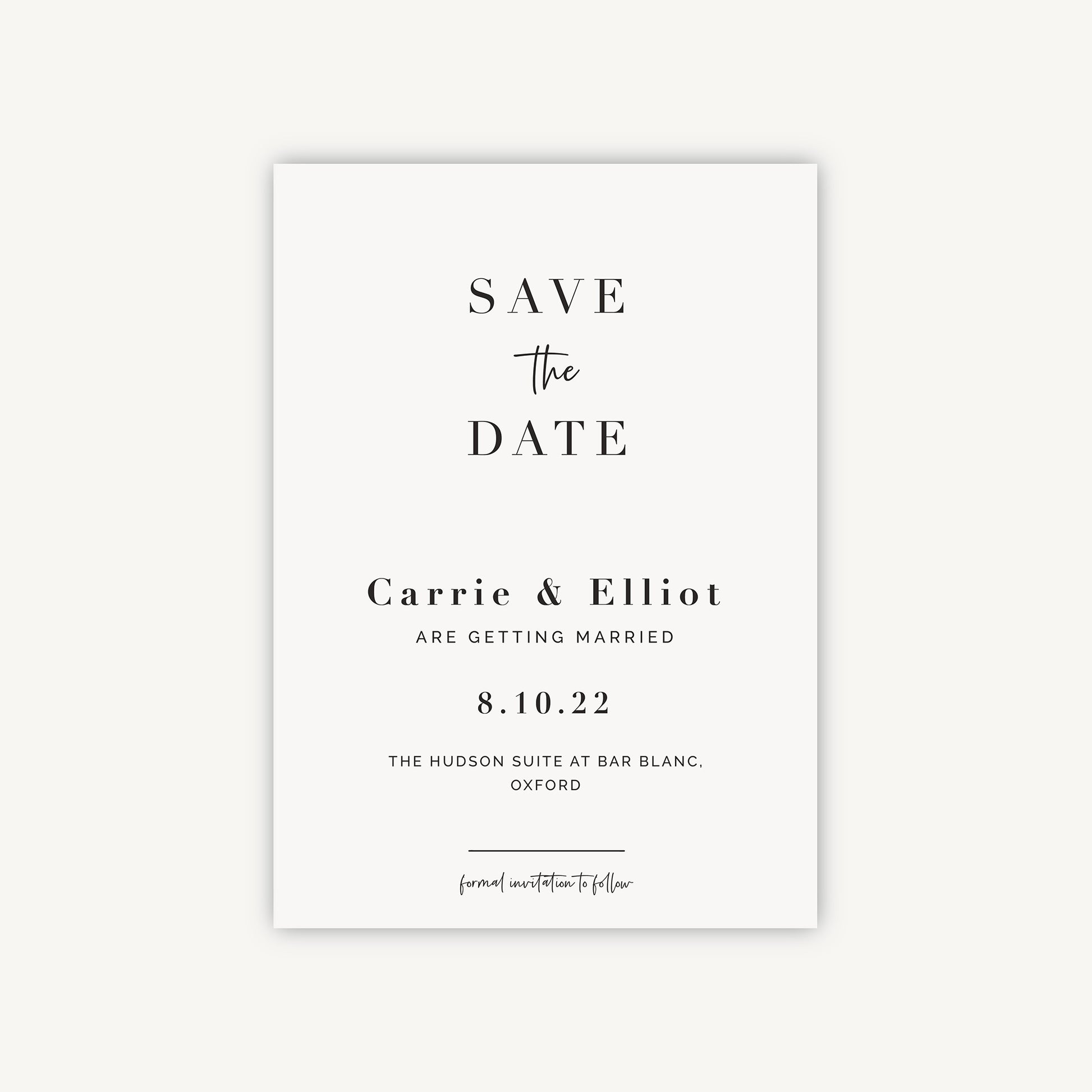 Show that you're hosting an elegantly simplistic wedding with our White Modern Script Wedding Save the Date. This sleek design focuses on a stylish and spacious typographic composition with a muted stone background. A carefully curated space to add your names, wedding date and venue.