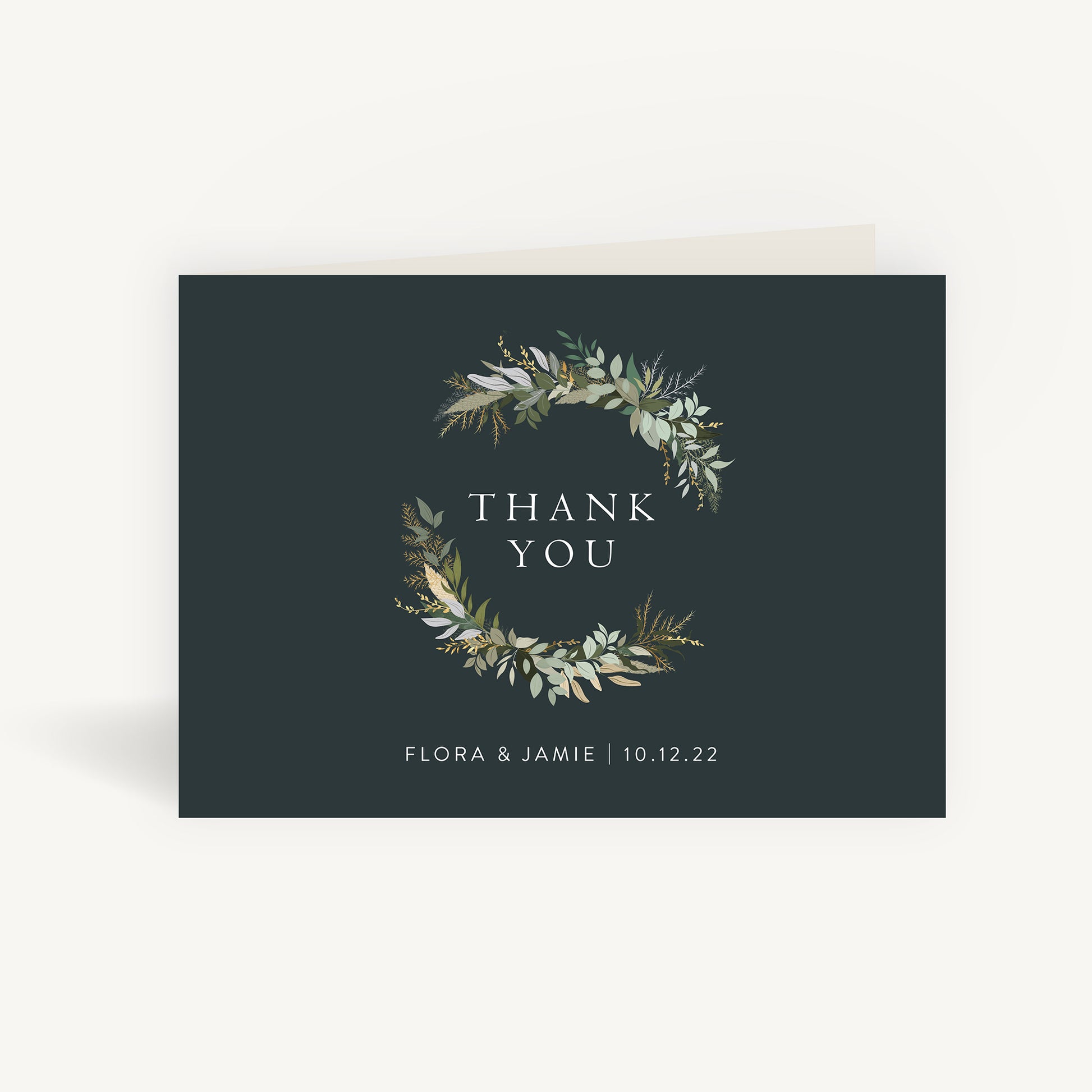 For presents or presence, our Winter Botanical Wedding Thank You Card Folded is a charming way to send thanks. Components of the collection are inverted with a soft stone coloured background and deep blue text. The delicate folded card sends thanks above your newly wedded names and date on the front and inside there is space for your heartfelt message of gratitude.