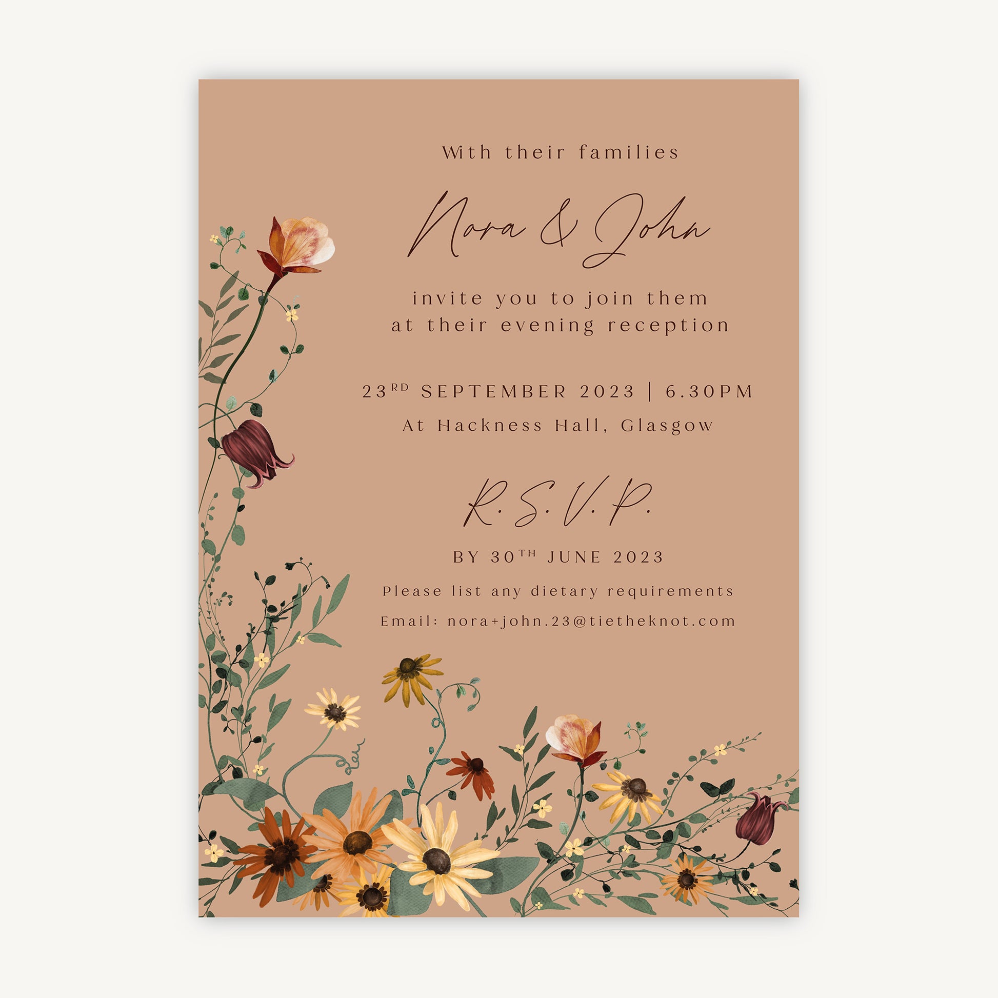 Autumn Wildflowers Evening/Reception Wedding Invitation
