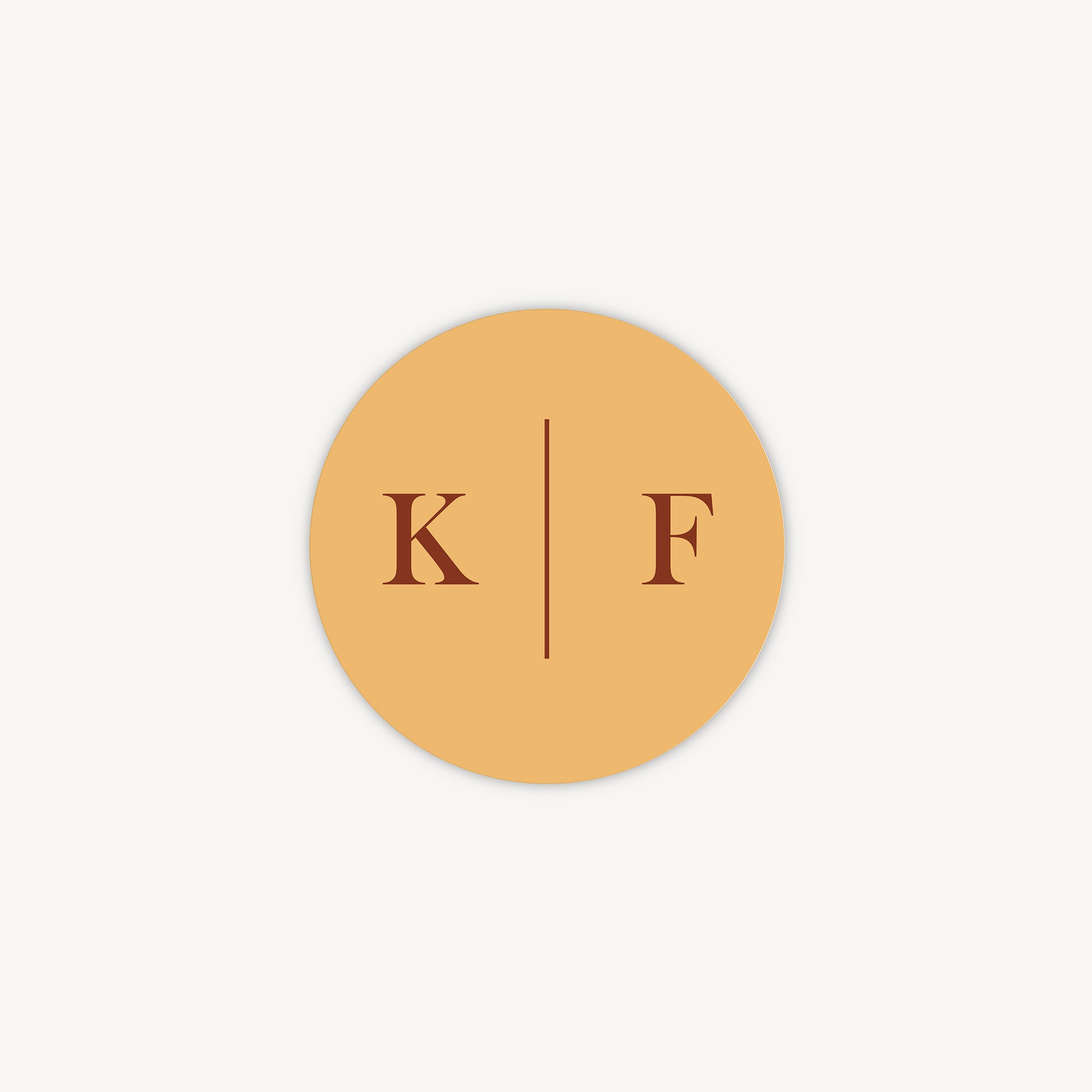 Our Caramel Autumn Colour Block Envelope Wedding Sticker is perfect for adding personal flair to your stationery. Text and background colours are cycled throughout the collection which creates visual unity across the stationery. Each circular decal features the couple’s initials with complimentary detailing.