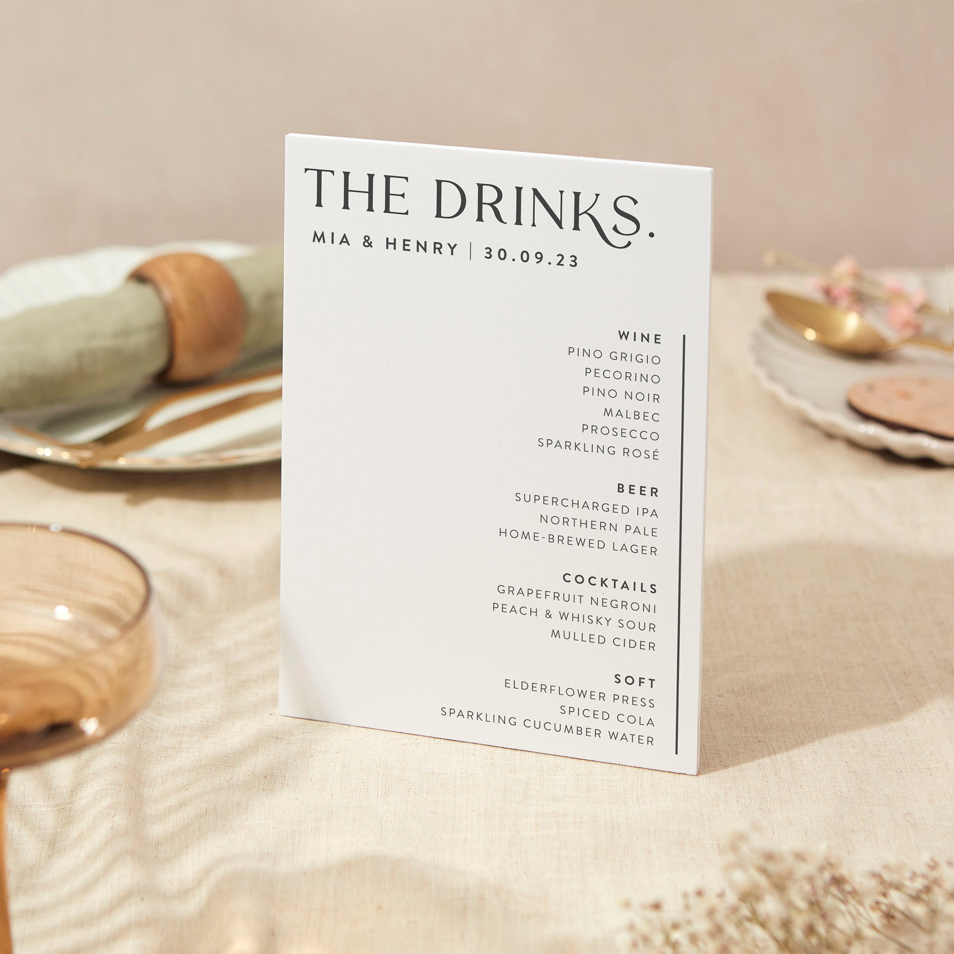Drinks Menu Sign Wedding Sign A5 Sturdy Foamex Sign Minimal Layout