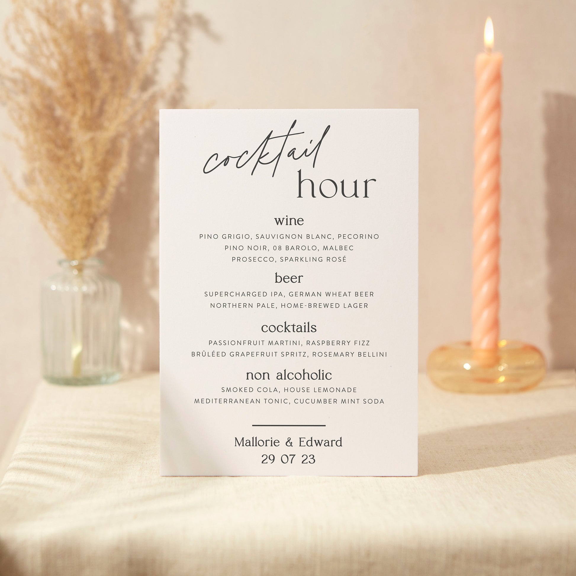 Drinks Menu Sign Wedding Sign A5 Sturdy Foamex Sign Modern Calligraphy