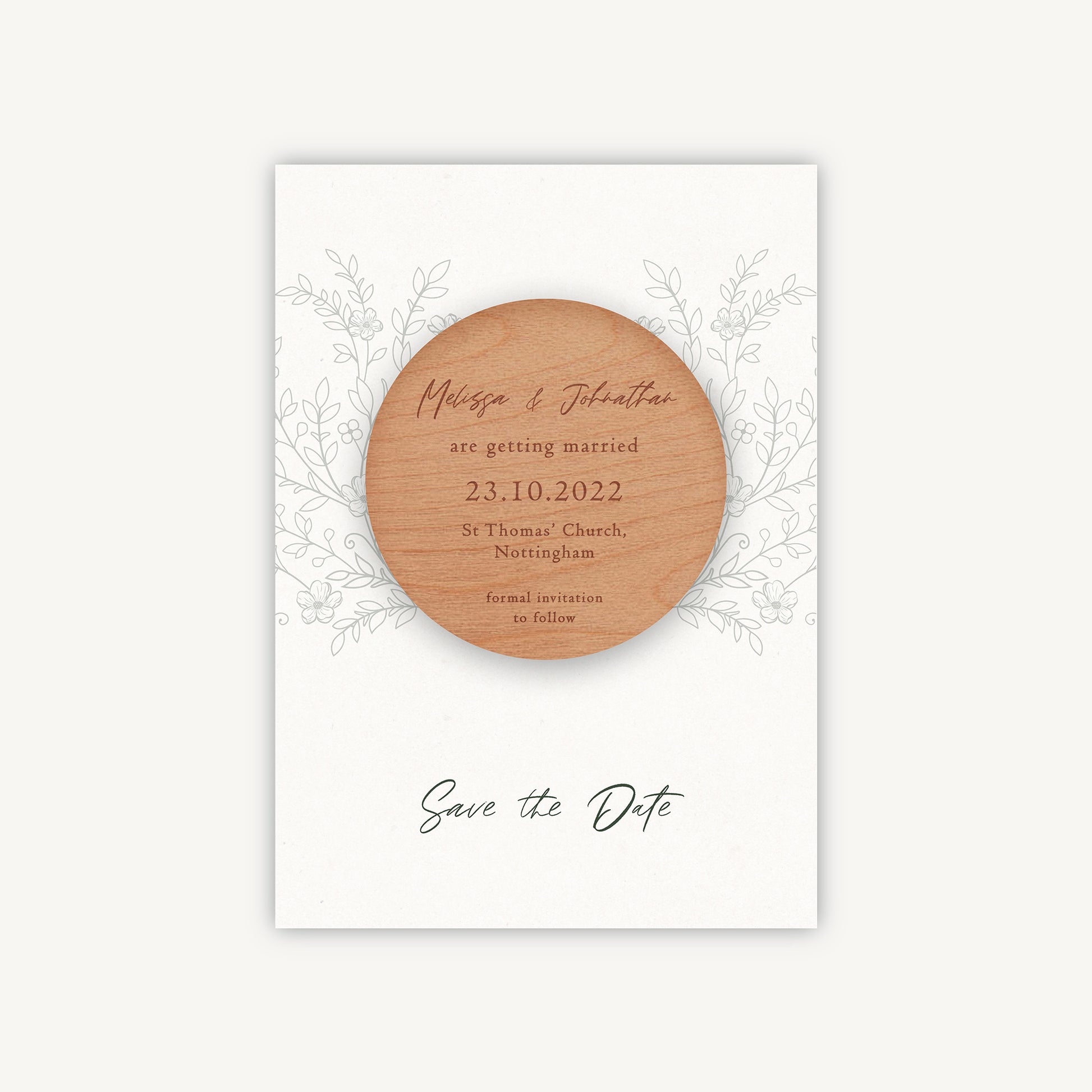 Elegant Floral Wooden Magnet Save the Date