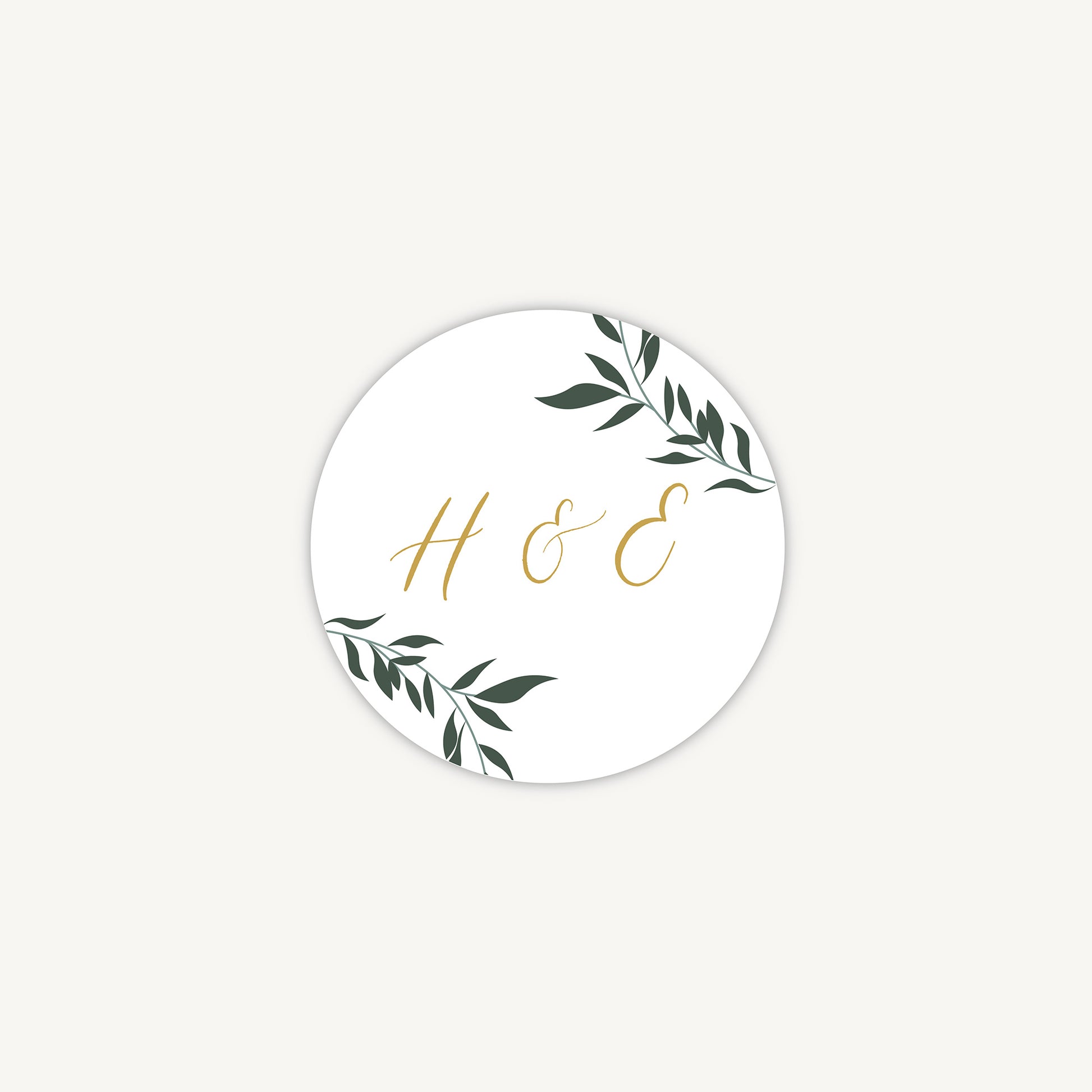 Our Foliage Hoop Envelope Wedding Sticker is perfect for adding personal flair to your stationery. The botanical illustration is shown in varying layouts throughout the collection. The round stickers are personalised with the initials of the happy couple.