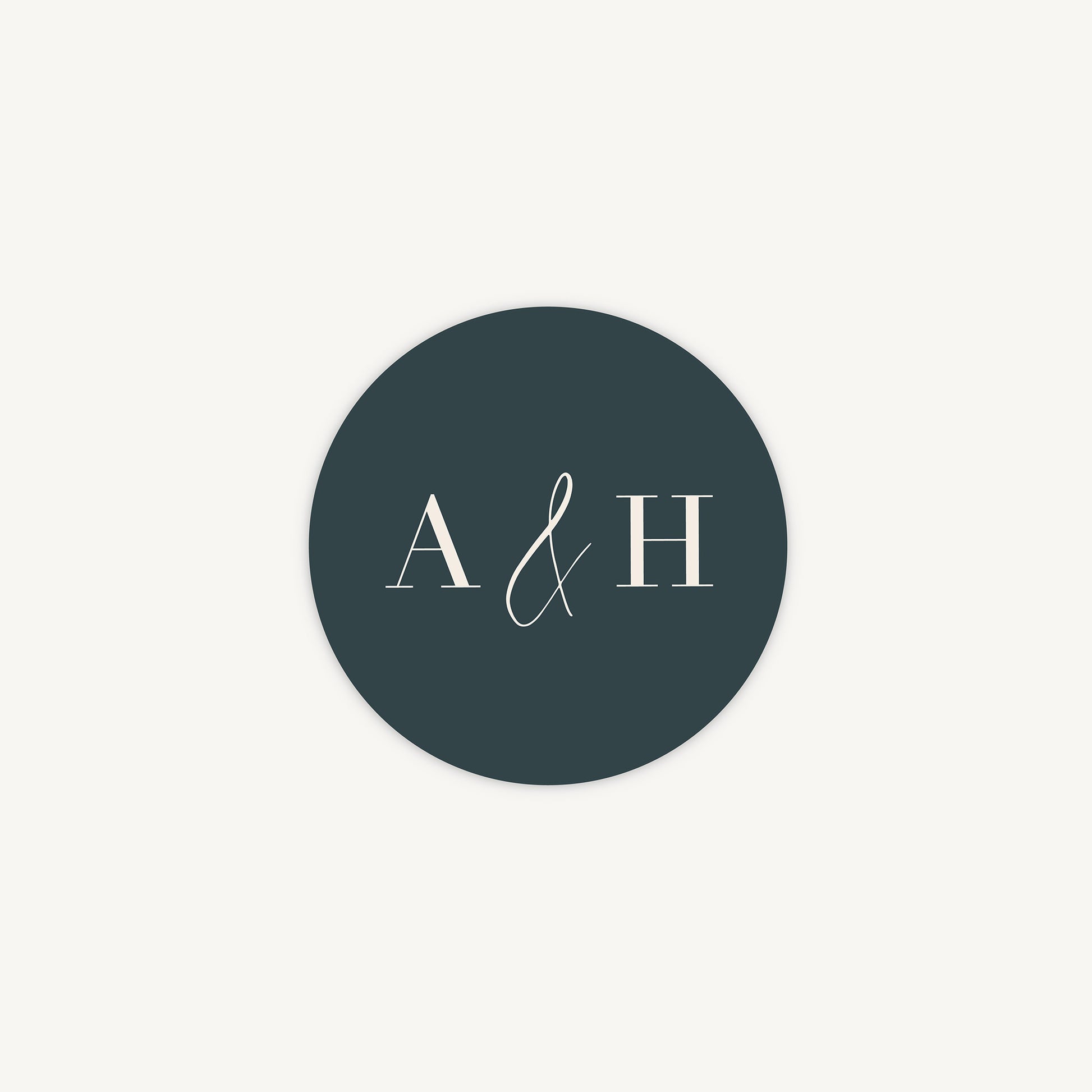 Make your stationery even more personal with our custom Foliage Monogram Envelope Wedding Sticker. Components of the collection are inverted with a deep Prussian blue background and soft cream text. The round stickers are personalised with the initials of the happy couple.