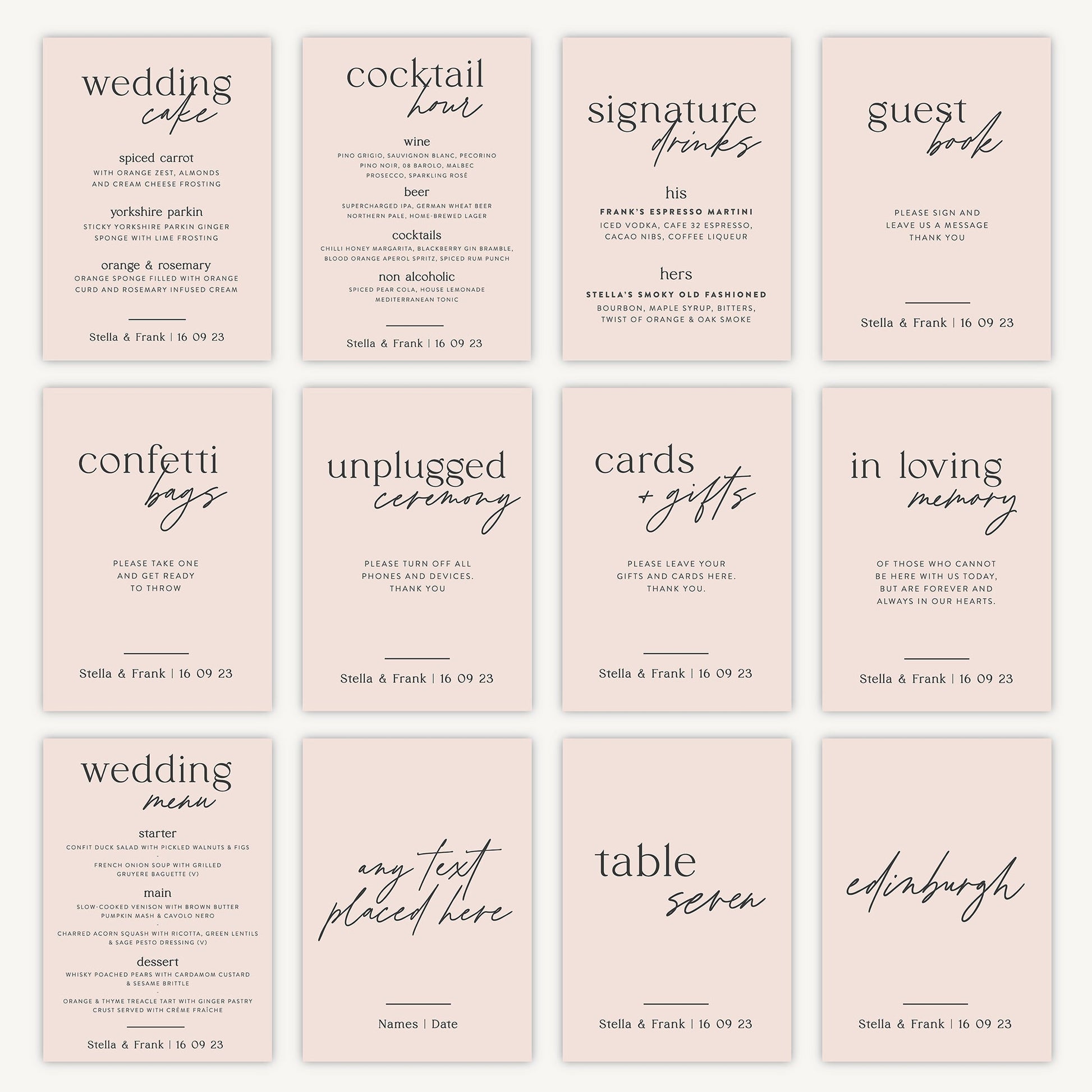 Style your special day with our printed Blush Script wedding signs.