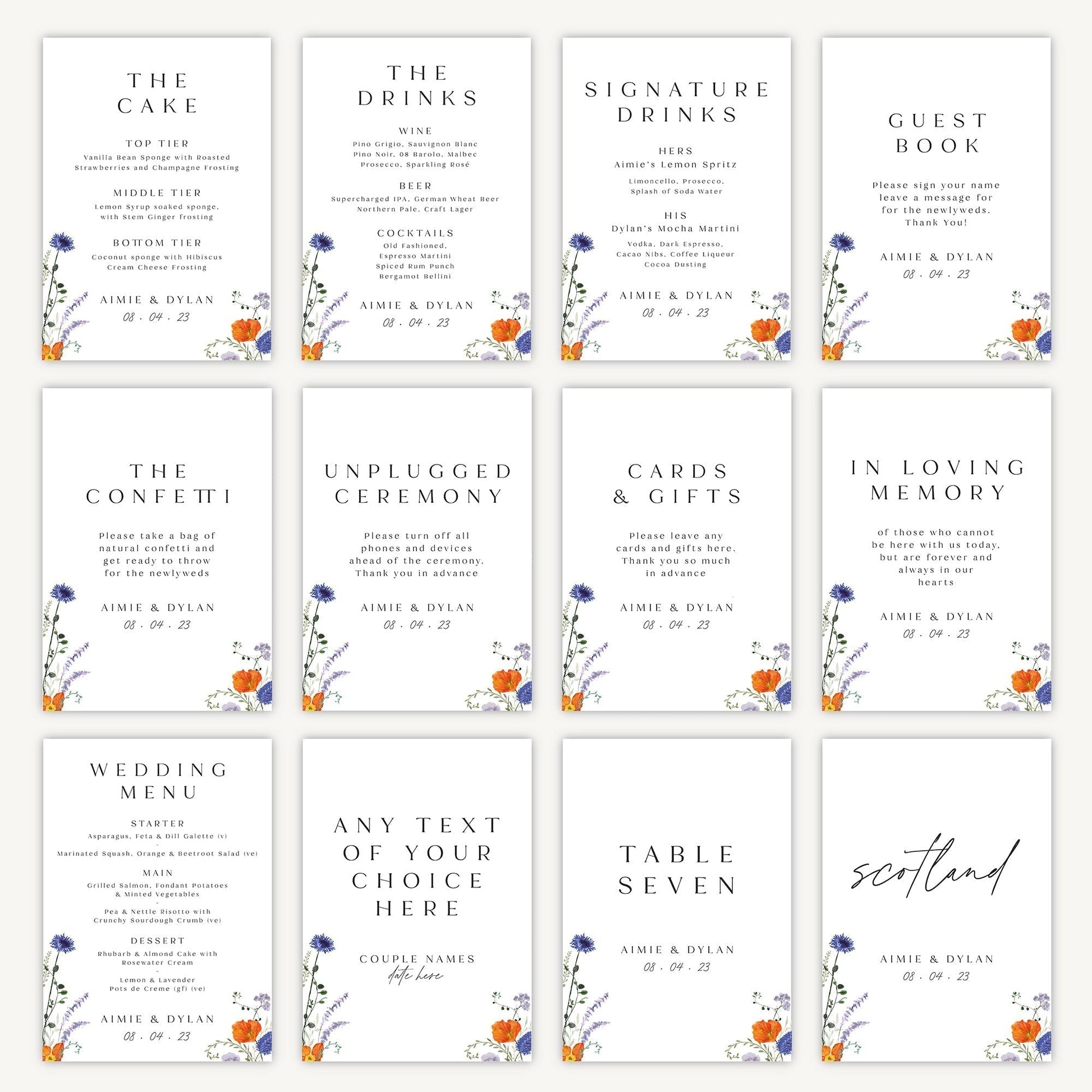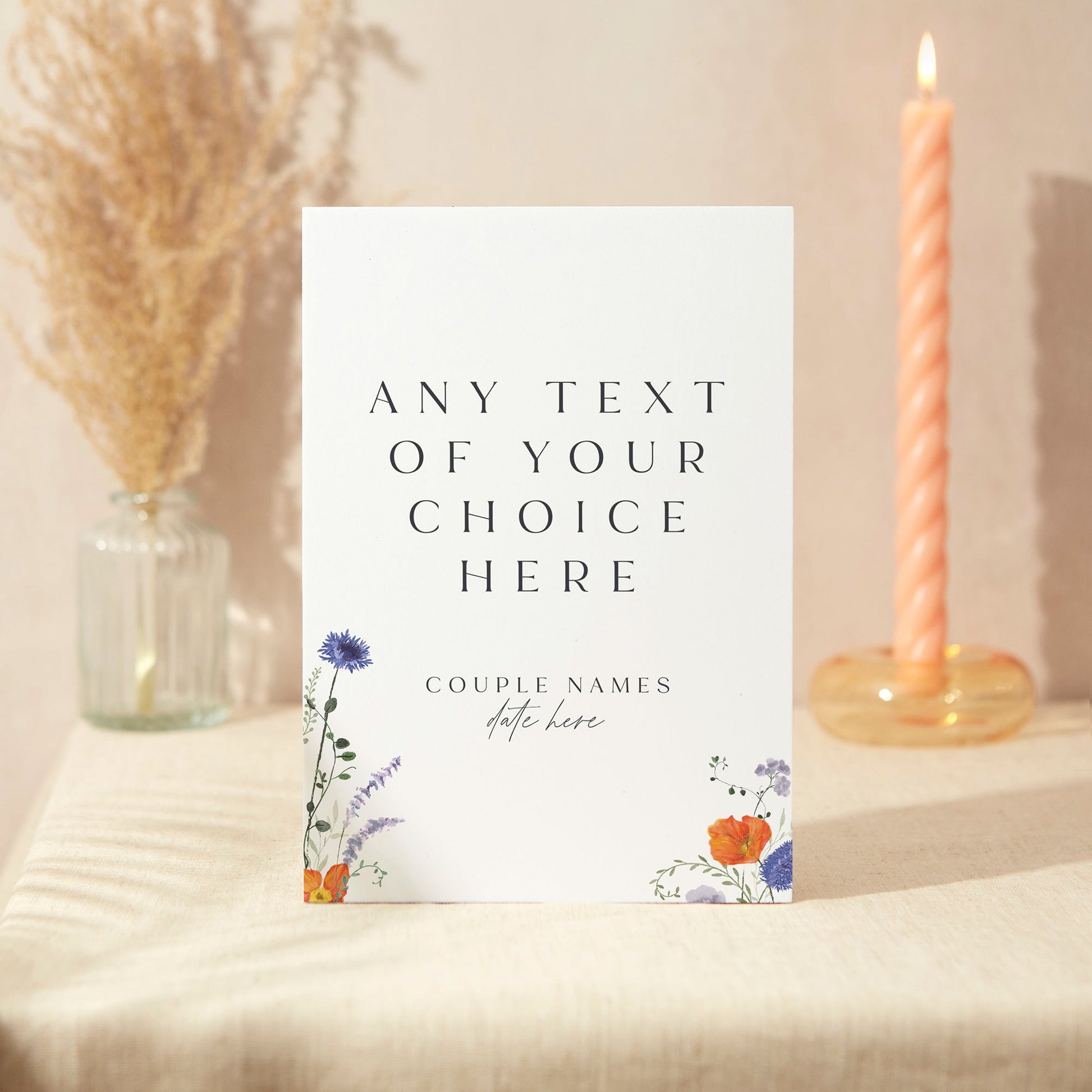 Style your special day with our printed Pressed Wildflowers wedding signs.