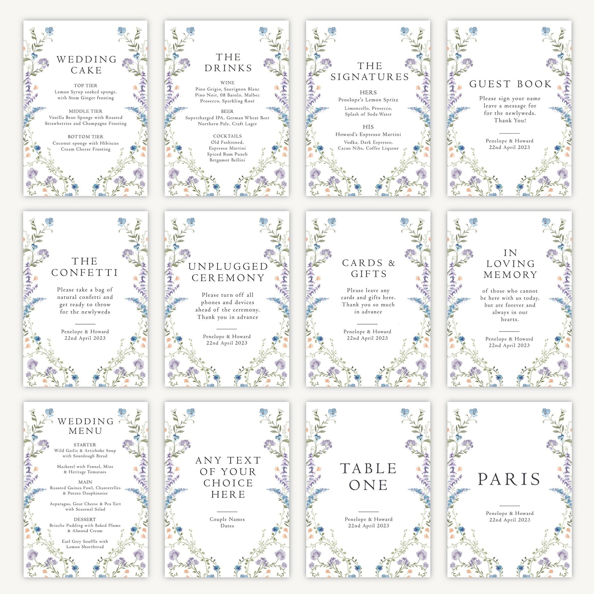 The beautiful boards feature your custom wording, names, and wedding date surrounded by symmetrical growths of delicate floral illustrations. Your designs are UV printed on sturdy 3mm thick waterproof foamex board which can be displayed to suit your taste both indoors and outside.