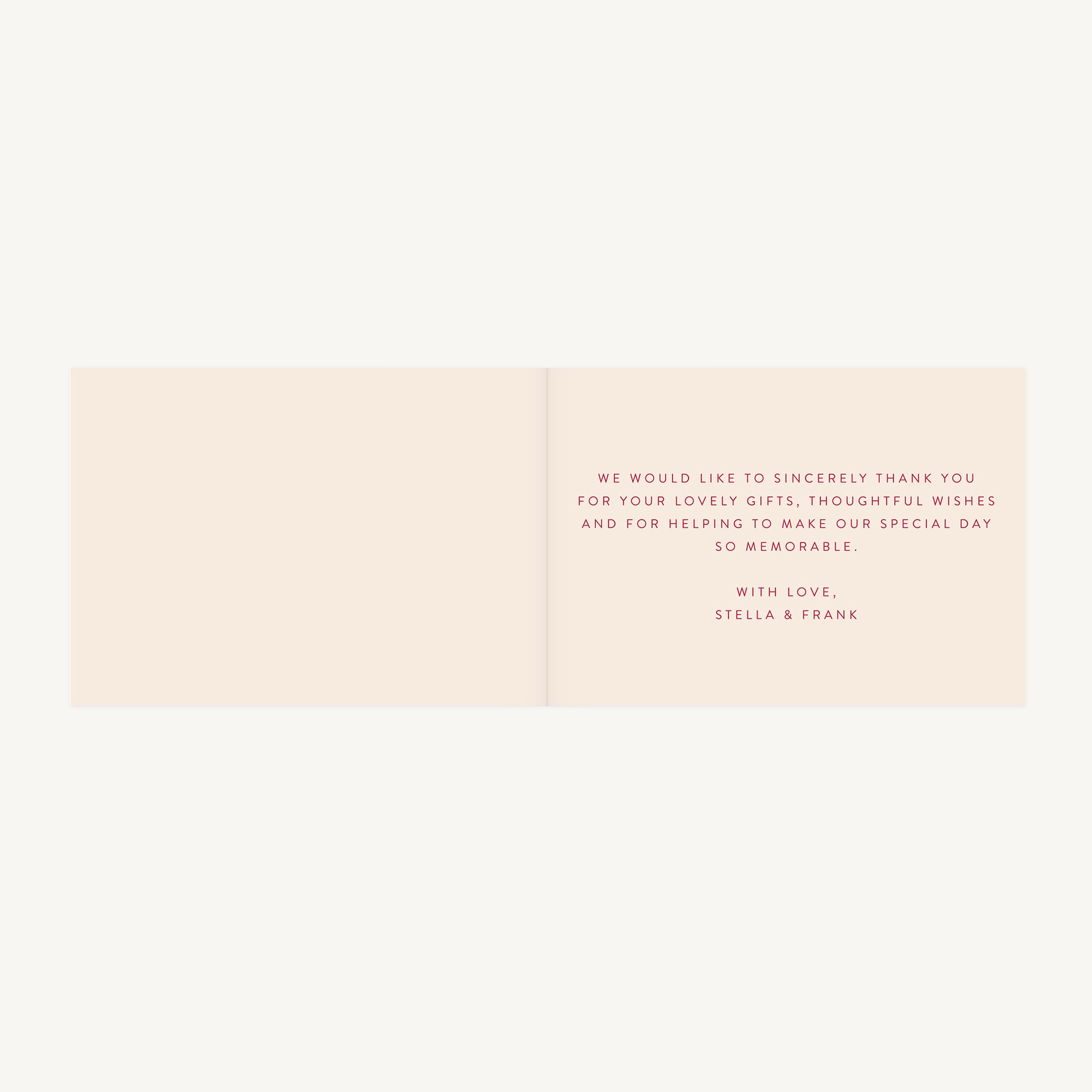 Folded wedding thank you card with printing on all sides and matching blank envelope