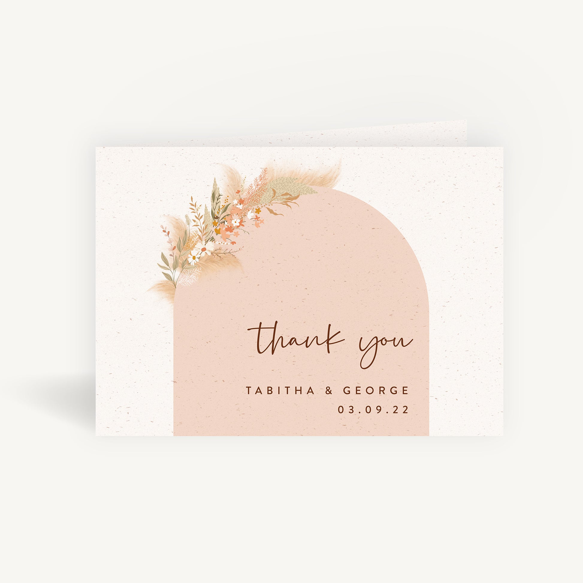 Spread loving thanks amongst your guests with our Modern Boho Wedding Thank You Card Folded. The collection explores bohemian themes through a colour palette of warm rustic tones. The delicate folded card sends thanks above your newly wedded names and date on the front and inside there is space for your heartfelt message of gratitude.