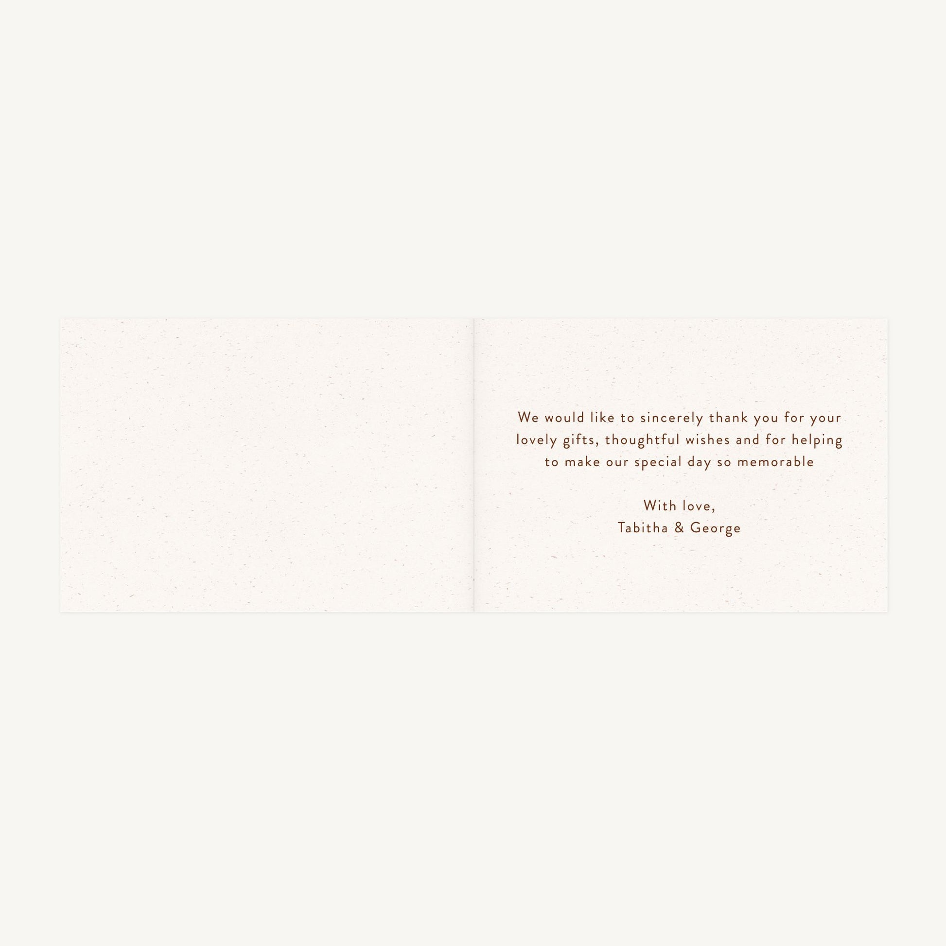 Folded wedding thank you card with printing on all sides and matching blank envelope