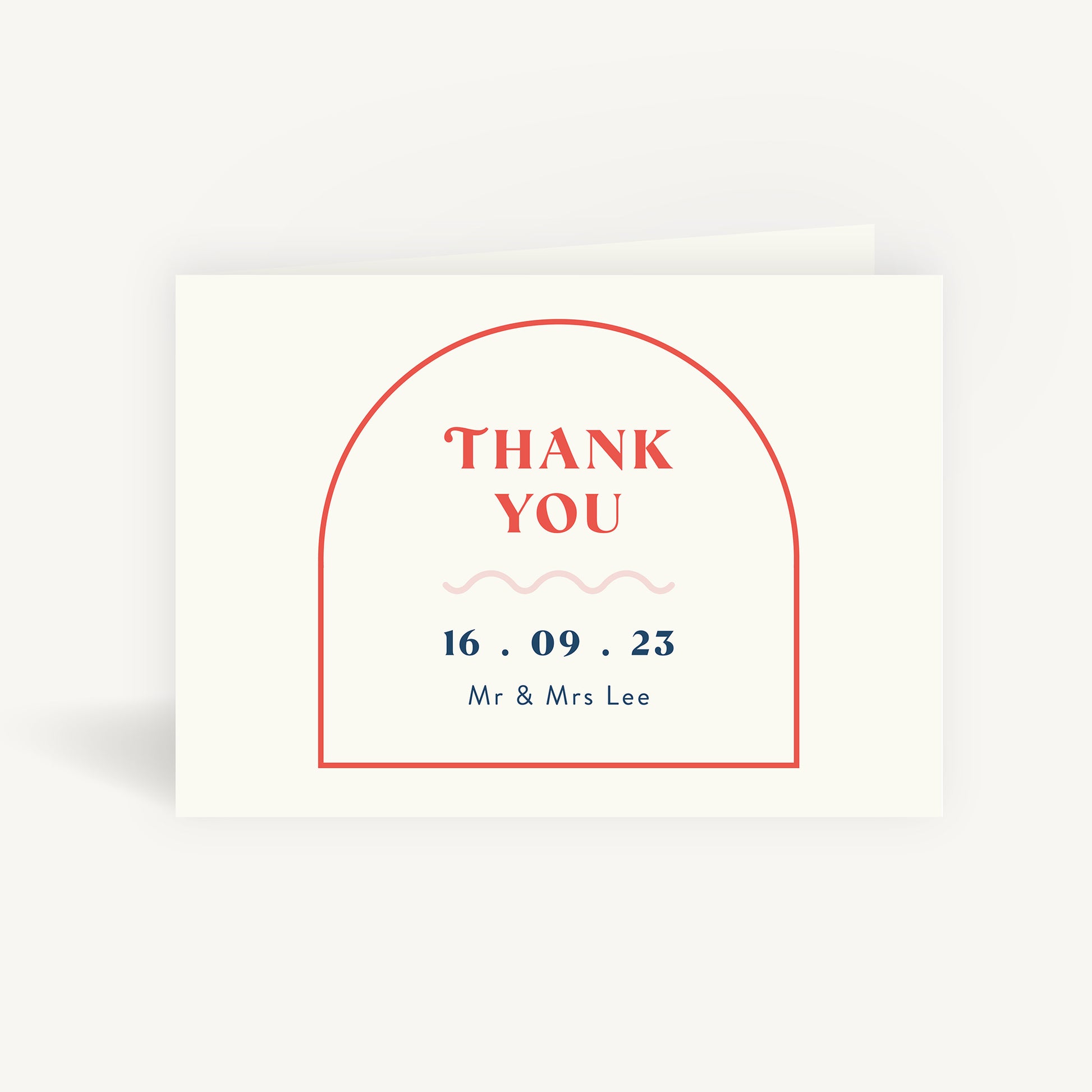 Spread a little of the love you felt on your special day with our Retro Revival Wedding Thank You Card Folded. Playful use of space, line, and type composition create heightened visual interest within the stationery. The cover displays thanks alongside your wedded name and ceremony date, then the card opens to a gracious message inside.