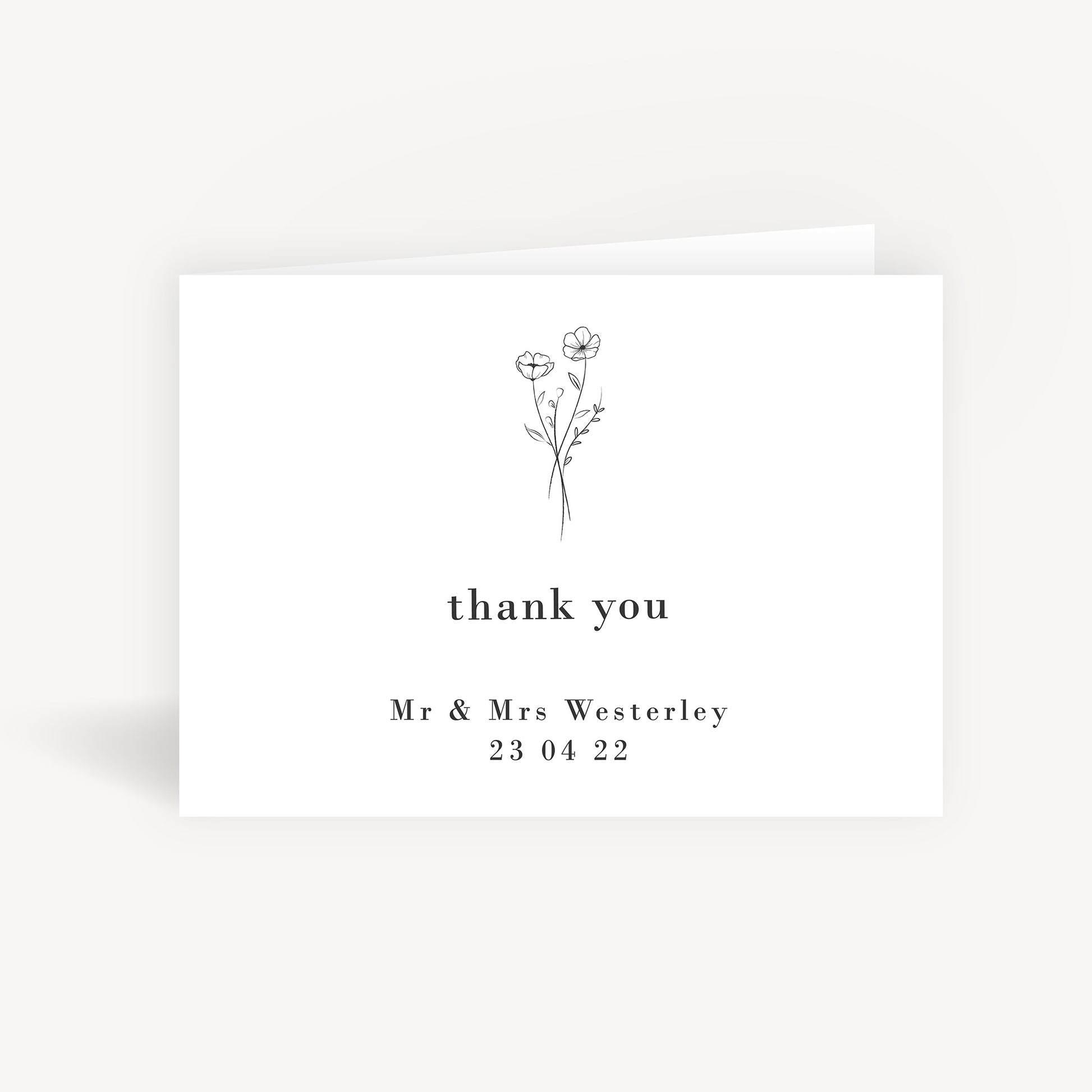 For your guests, wedding party or loved ones sending wishes from afar, our Simple Floral Wedding Thank You Card Folded is a lovely way to show your gratitude for everyone who made the big day so special. Shifts between central and right-alignment create subtle contrast and visual interest within the designs. Eloquently send your thanks with a personal message enclosed inside a beautiful card, finished with your names and wedding date on the front cover.