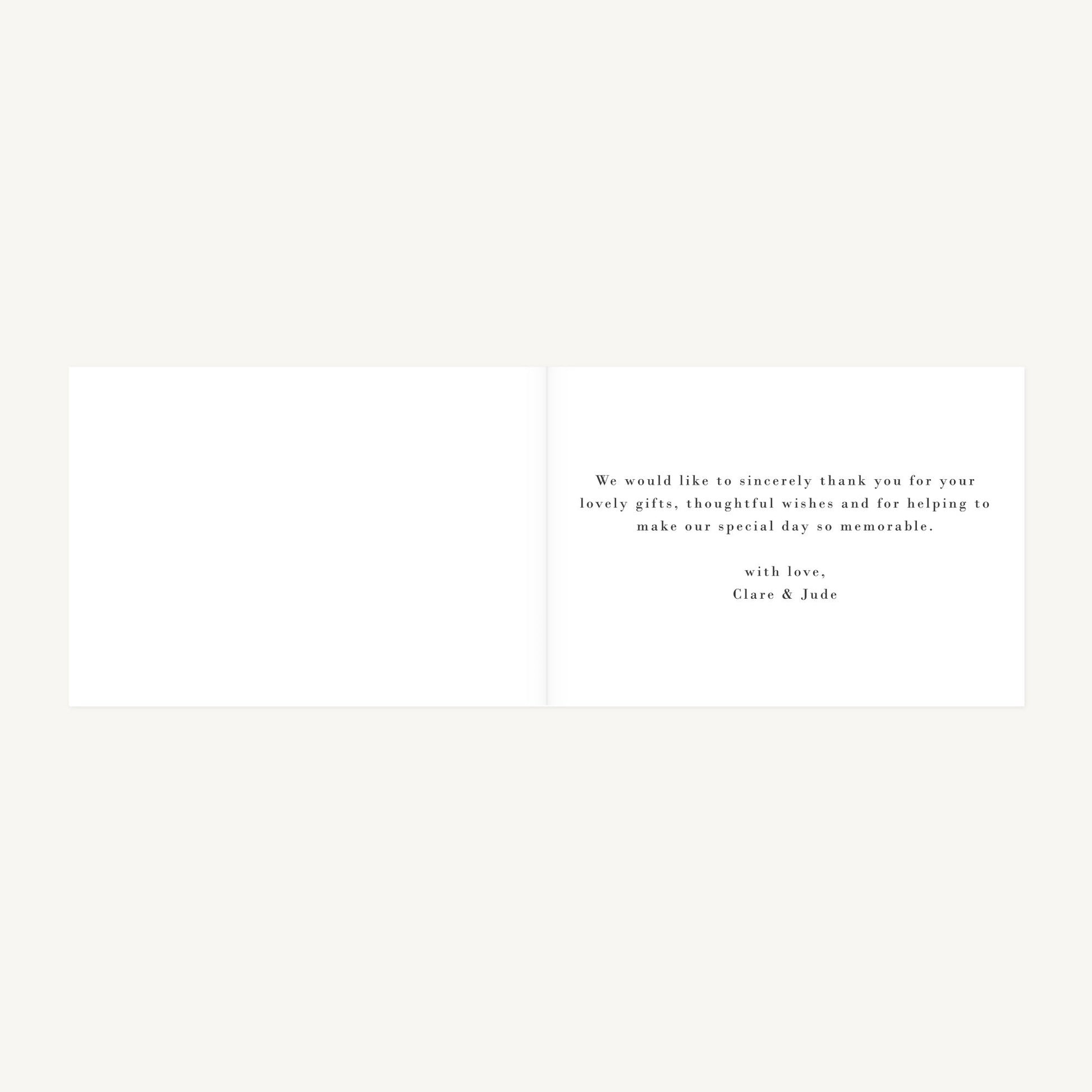 Folded wedding thank you card with printing on all sides and matching blank envelope