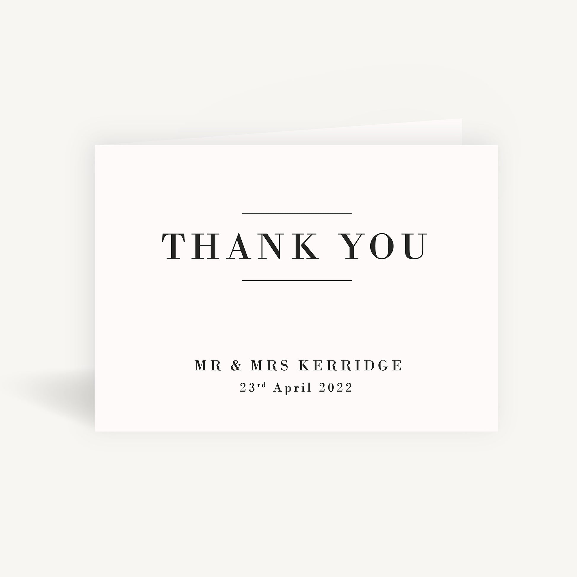 Say a heartfelt thank you to your guests with our Simple Script Wedding Thank You Card Folded. The core features of script and linework are shown in varying compositions throughout the collection. Your married names are featured above your wedding date on the front of the card and inside reveals a personalised message of thanks for your guests.