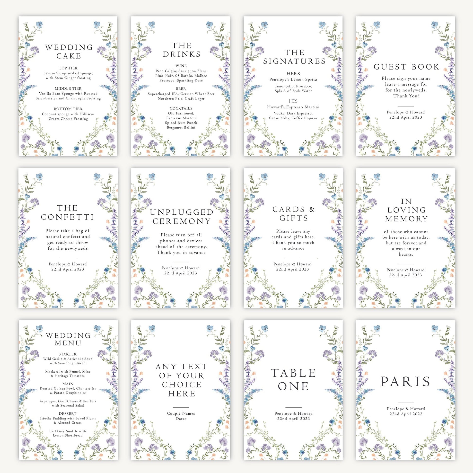 The beautiful boards feature your custom wording, names, and wedding date surrounded by symmetrical growths of delicate floral illustrations. Your designs are UV printed on sturdy 3mm thick waterproof foamex board which can be displayed to suit your taste both indoors and outside.