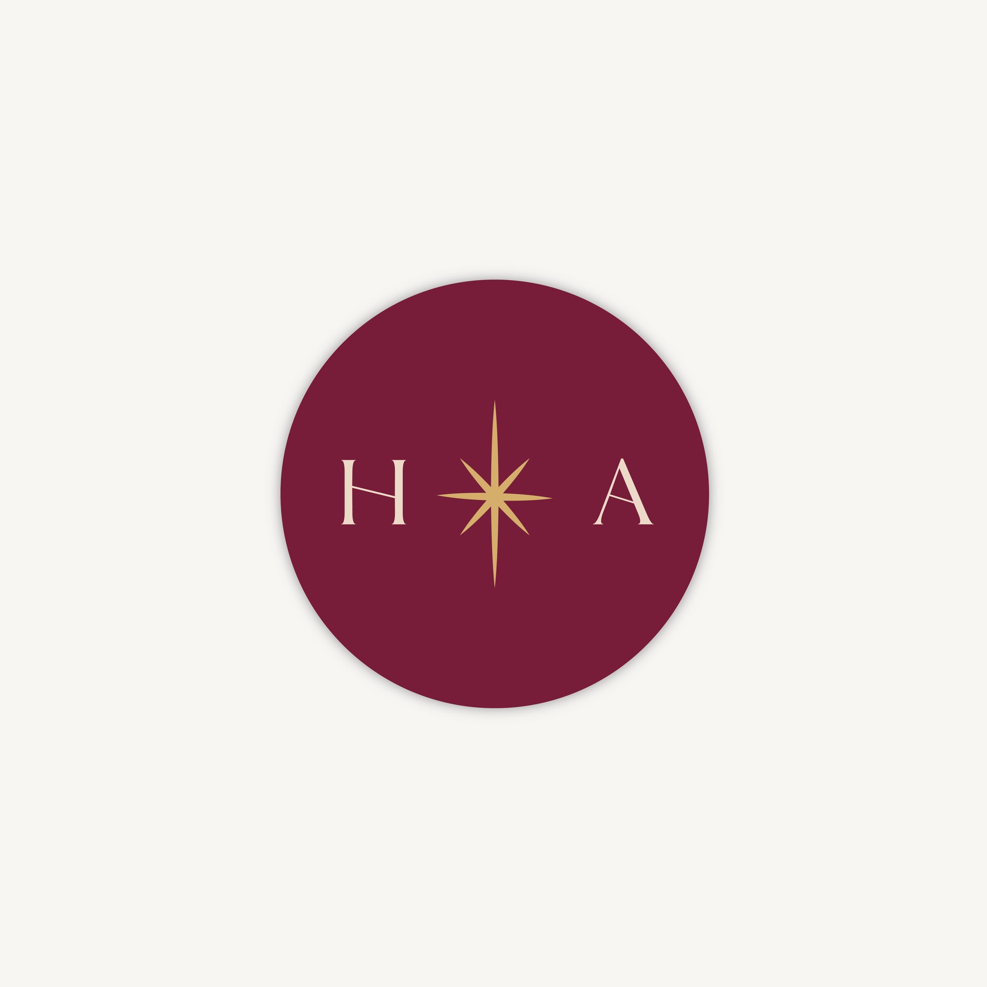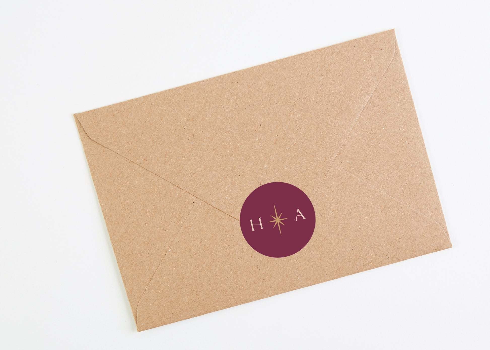 Make your stationery even more personal with our custom Winter Christmas Envelope Wedding Sticker. A stunning contrast is created by the beautiful magenta background and cream text. The round stickers are personalised with the initials of the happy couple and finished with a glossy coating.